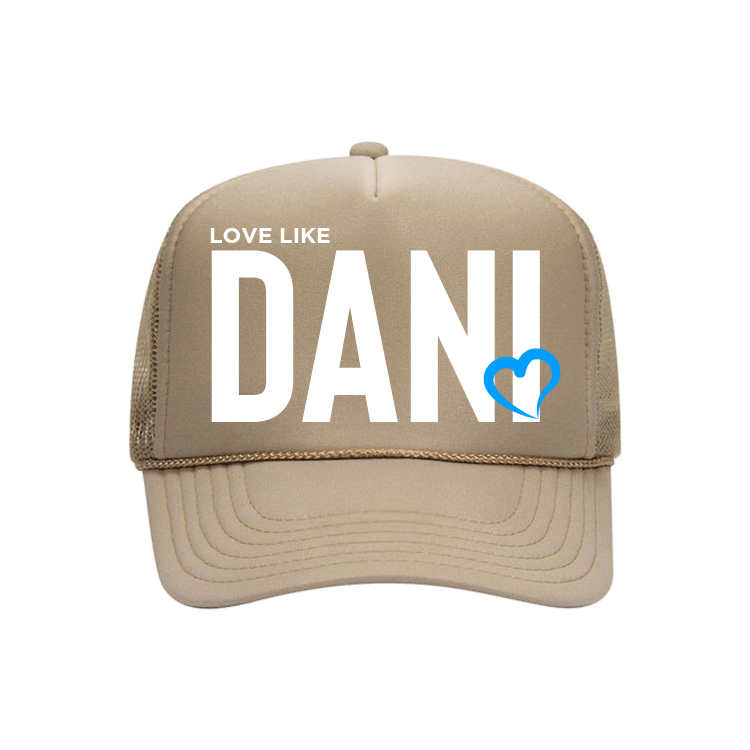 This ICONIC foam front hat features a silicone LOVE LIKE DANI w/ HEART front and center.